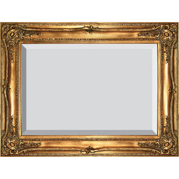 Interior size is 36 x 48 with an overall exterior dimension of 47 x 59 with a profile width of 5.5 and a profile height of 3.25 . Our Traditional frame is traditional framer's classic. The details are cast in non shrinking Polyurethane and then mounted on a wood backing with a wood liner. The finish is a classic Antique gold leaf finish with hand distressing and antiquing rub to draw out the details. The frame offers a museum quality framing style with in reasonable scale