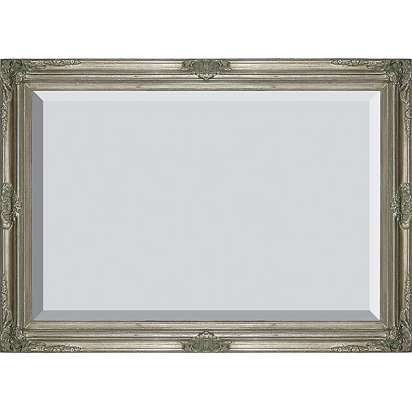 Interior size is 24 x 36 with an overall exterior dimension of 30 x 42 with a profile width of 3 and a profile height of 2 . Our Mini Grand Victorian frame is traditional designed frame made in solid wood with classic compo corner ornamentation and wood liner. The frame is finished in a silver leaf all over finish with hand applied antiquing and rub to bring out accents and details. The frame has a clean classic framer's look and feel in a current silver tone.
