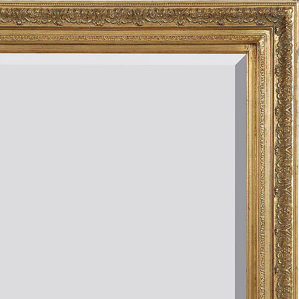 Interior size is 12 x 24 with an overall exterior dimension of 20 x 33 with a profile width of 4 and a profile height of 2.25 . Our Prestige frame is a very popular and beautiful solid wood frame with a refined ornamentation design and wood liner featuring a hand finish of antique gold leaf with a hand rub to bring out the details. A transitional design offering a timeless framing solution. A FRAMERS CHOICE SELECTION !!!