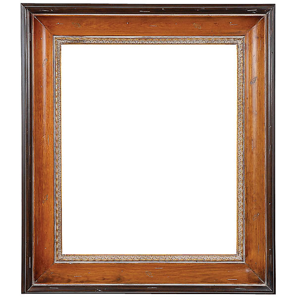 Interior size is 24 x 36 with an overall exterior dimension of 33 x 45 with a profile width of 4.5 and a profile height of 2.5 . Our American Woods is framers favorite. Made in solid wood. The frame style is offered in several finishes for you to choose from. This very pretty and rich finish shown is our LDP. A combination of wood tone colors that draws the viewers eye inward. The outer edge has a darker outer tone that graduates to the lighter wood tone inner scoop which is then defined by lighter French gold inner liner. The distinct finishes used and popular profile combine to create a very easy to use framing result.