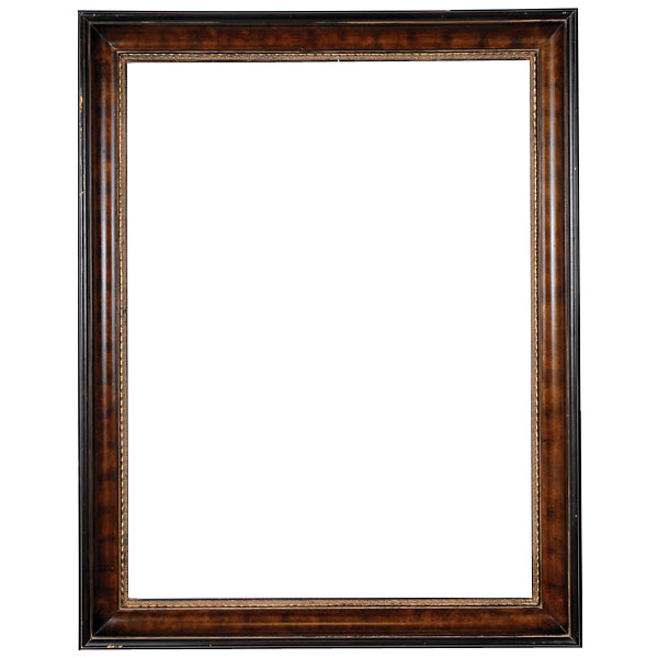 Interior size is 36 x 48 with an overall exterior dimension of 46 x 57 with a profile width of 4.5 and a profile height of 2.5 . Our American Woods is framers favorite. Made in solid wood. The frame style is offered in several finishes for you to choose from. This very pretty and rich finish shown is our DWB. Dark Wood Black a finish of graduated colors from outside to in that draws the viewers eye inward as a proper frame should. The outer edge has a darker outer tone that graduates to the deep inner scoop which is contrastingly finished in a deep almost translucent wood tone which is then defined by antiqued gold inner liner. The distinct finishes used and popular profile combine to create a very easy to use beautiful framing result. A FRAMERS CHOICE SELECTION !!!