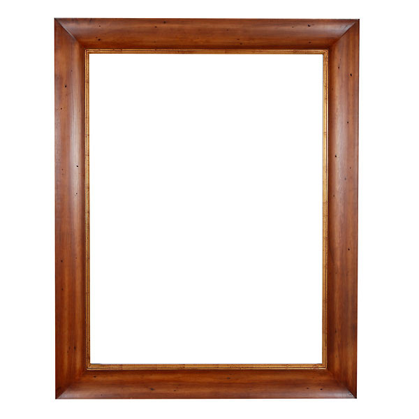 Interior size is 36 x 48 with an overall exterior dimension of 47 x 59 with a profile width of 5 and a profile height of 2 . Our large Western Wood frame is a natural framing style in a larger profile for larger uses. The frame is made in wood with pecky pine technique and finish enhanced with a subtle yet chic gold defining lip finish at its center. The profile is an American classic and is easily paired with any western rustic or any natural subject as well as interiors.