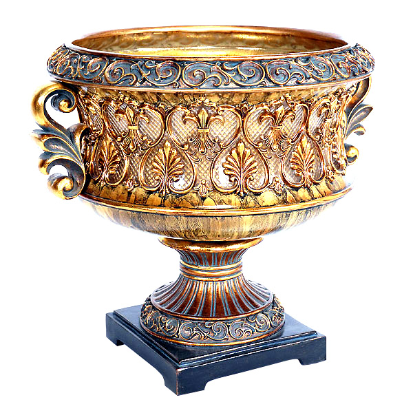 A 15 wide Venetian bowl on stand. Hand finished in hues of brown gold with transulcent details. Cast in resin.