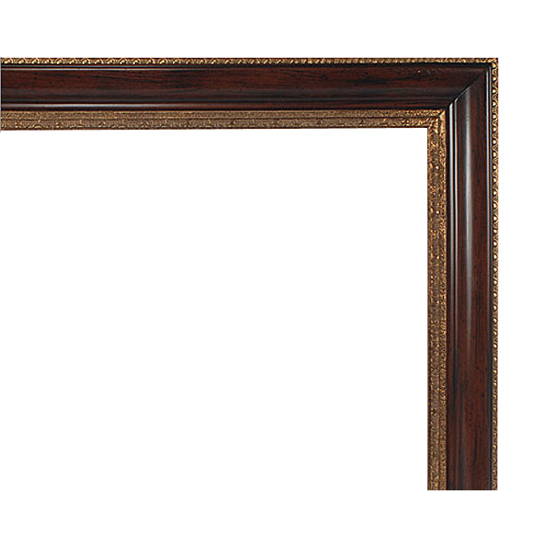 Interior size is 36 x 48 with an overall exterior dimension of 43 x 55 with a profile width of 3.5 and a profile height of 1.75 . Our Old English Frame is a very easy to use traditional frame with a clean profile and ease of application. The frame is made in solid wood with a hand finish of burl and gold.