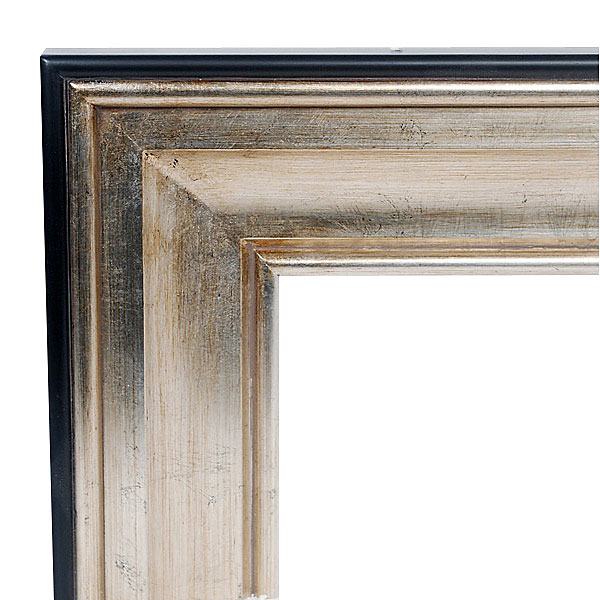 Interior size is 40 x 40 with an overall exterior dimension of 52 x 52 with a profile width of 6.5 and a profile height of 2.5 . Our Silver Raven Frame is currently one of the most popular designs available. It is easy to place and affective at adding value on almost everything it is selected to be used on. It is both transitional as well as contemporary and an affective framers' solution for accenting and defining a variety of popular subjects and interior applications. The frame's clean lines are defined by a striking black exterior and facial edge leading to a striking silver leaf that angles toward the center. The frame is made entirely in solid wood with a wood lip liner detail. For smaller size framing requirements consider using our also very popular F723 Contempo Silver/Black Frame with its slightly smaller 5 profile width in the same beautiful profile and finish. A FRAMERS CHOICE SELECTION !!!