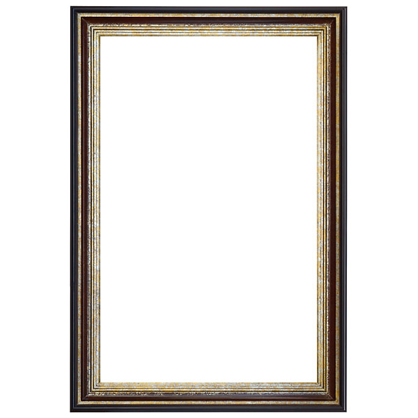 Interior size is 48 x 60 with an overall exterior dimension of 58 x 70 with a profile width of 5 and a profile height of 2.5 . Our Bardiloni frame is a classic Italian designed frame. The frame is made in wood with a hand finish of graduated colors from outside to in drawing the viewers eye inward. The outer edge has a dark outer side the deep inner scoop is finished in a mahogany burgundy wood tone defined by raised lighter bands The frame also features a shabeen treatment of variegated gold and silver and burgundy metal leafing. The distinct finishes used and popular profile combine to create a very interesting and well defined framing result.