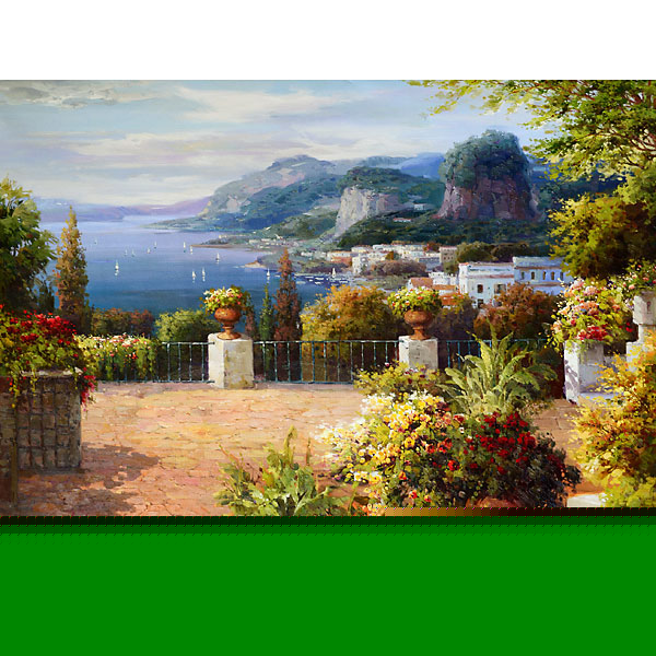 Our Mediterranean image depicts the beauty of the Mediterranean coast. The painting with artists attention to detail and ability to invoke depth with the skilled use of light and shadowing creates certain desire to visit this romantic landscape while bringing beauty to the setting it is placed. It comes gallery wrapped and ready to hang. The finished image size is 36 x 48 inches. A Le Beau Giclee is a Museum quality recreation of an original top artists' work on canvas by AFD. The techniques used are one of the most accurate forms of art reproduction today utilizing 100% archival inks and acid-free canvas. Each Le Beau Giclee is a masterpiece creation and are hand embellished by a professional artist in our studio to achieve the rich texture and depth of the final delivered artwork making it almost indistinguishable from the original oil painting. Now allowing some of the finest oil paintings to no longer be exclusive to museums and private collectors and often due to price making the most beautiful paintings ever created unobtainable for enjoying by others. A Le Beau Giclee will remain an heirloom piece with display time of well over 100 years.