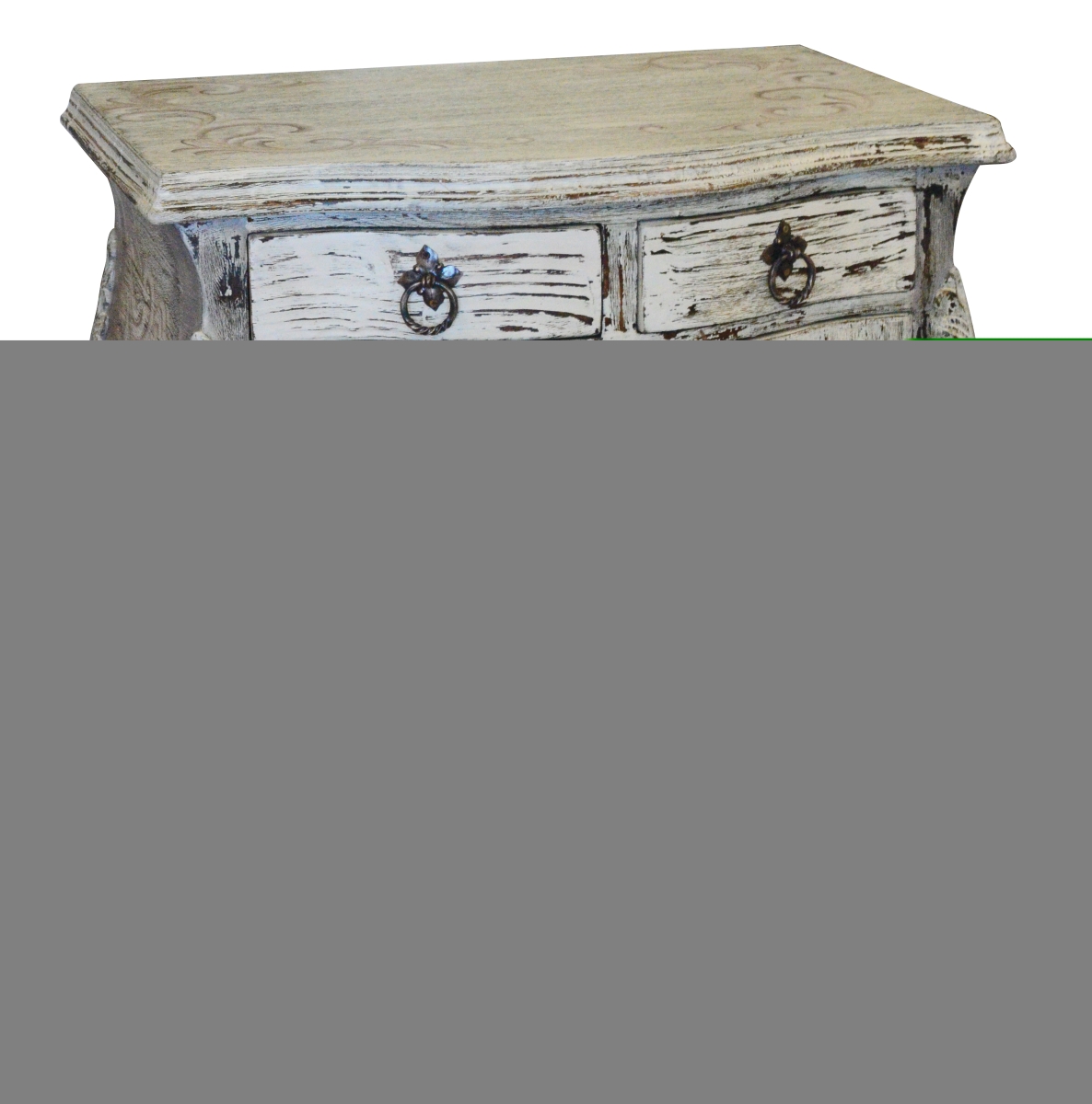 The Savoie Nightstand is 32 wide and 33 tall and was developed to match one of our most popular beds from our Savoie Series . This collection boasts a Spanish Coastal influence with large scaled details in a continental lighter finish of distressed creamy whites with a contrast resulting from hand rubbing and exposing the rich wood undertones then delicately detailed with hand painted soft scrolls. While considering the nightstands to enhance the beautiful Savioe King bed there are many other matching items offered in this series for additional functions and a larger complete design. The Savoie series is part of our Santa Lucia Collection which consists of handmade hand painted and distressed solid wood furniture making each piece a timeless investment. Hand crafted treasures made one piece at a time under one roof by our exclusive family owned manufacturer from Lima Peru. Their master artisans are skilled in furniture making techniques influenced by the Spanish during the colonization of Peru. Many items in the diverse collection feature specialty hand painted finishes that have also been passed on and perfected from generation to generation. The family strives to be environmentally friendly by using woods re-purposed from haciendas and old colonial homes as well as wood indigenous to South American forests primarily mahogany cedar moena and requia. If you are a lover of beautiful painted furniture find hill country rustic romantic or find richness in Mediterranean lore Then you too may fall in furniture love with this fine collection.