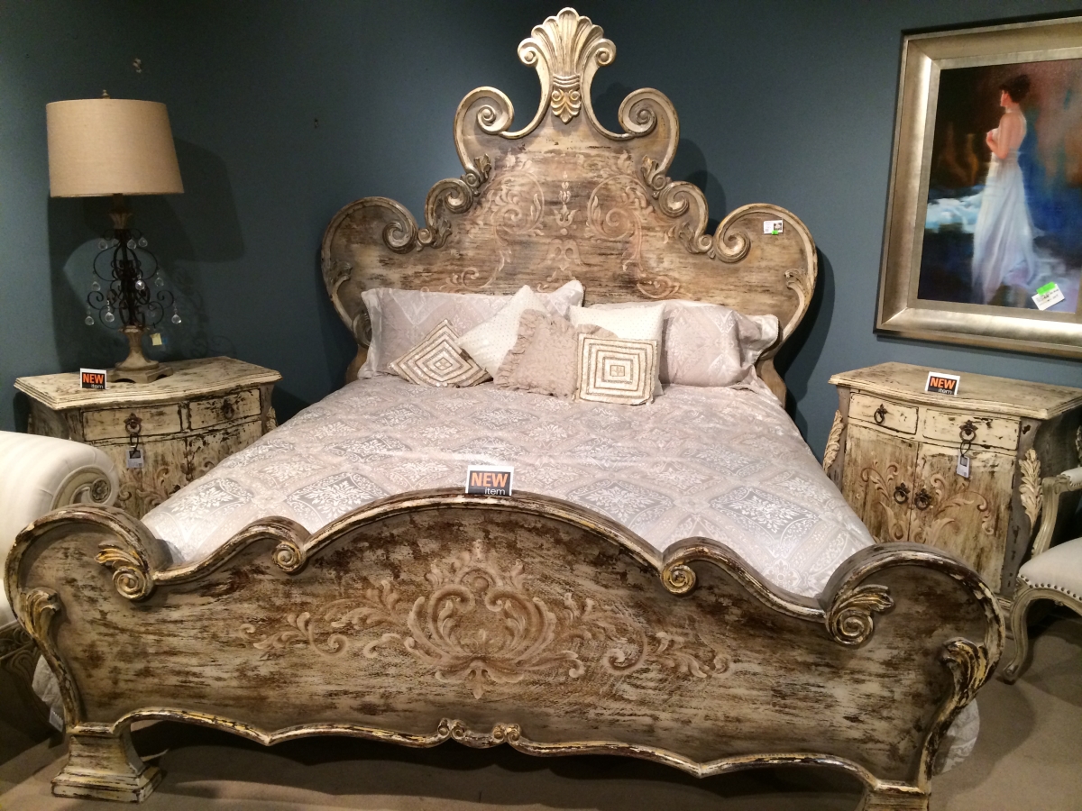 The Savoie King Bed is one of our most popular beds and stands a stately 90 tall from our Savoie Series . This collection boasts a Spanish Coastal influence with large scaled details in a continental lighter finish of distressed creamy whites with a contrast resulting from hand rubbing and exposing the rich wood undertones then delicately detailed with hand painted soft scrolls. There are many matching items offered in this series as well as designed matching Savoie nightstands. The Savoie series is part of our Santa Lucia Collection which consists of handmade hand painted and distressed solid wood furniture making each piece a timeless investment. Hand crafted treasures made one piece at a time under one roof by our exclusive family owned manufacturer from Lima Peru. Their master artisans are skilled in furniture making techniques influenced by the Spanish during the colonization of Peru. Many items in the diverse collection feature specialty hand painted finishes that have also been passed on and perfected from generation to generation. The family strives to be environmentally friendly by using woods re-purposed from haciendas and old colonial homes as well as wood indigenous to South American forests primarily mahogany cedar moena and requia. If you are a lover of beautiful painted furniture find hill country rustic romantic or find richness in Mediterranean lore Then you too may fall in furniture love with this fine collection.