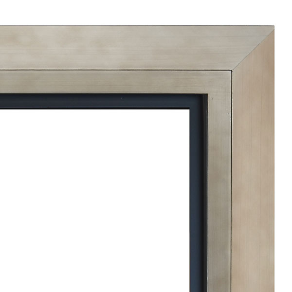 Interior size is 36 x 48 with an overall exterior dimension of 48 x 60 with a profile width of 6 and a profile height of 3.75 . Our Grand Float - Silver -Frame embraces a new aesthetic for gallery framers. Also referred to as a float technique where art is now placed as if freely floating with deliberate space evenly surrounding it. Our Grand Float with its clean angle yet raised projecting profile is a substantial option for creating this current and popular affect in modern gallery framing. The frame is solid wood with a relaxed angled outer edge finished in a striking outer silver leaf creating a dramatic contrast with an interior of black. This frame is available in many sizes and finishes. A FRAMERS CHOICE SELECTION !!!