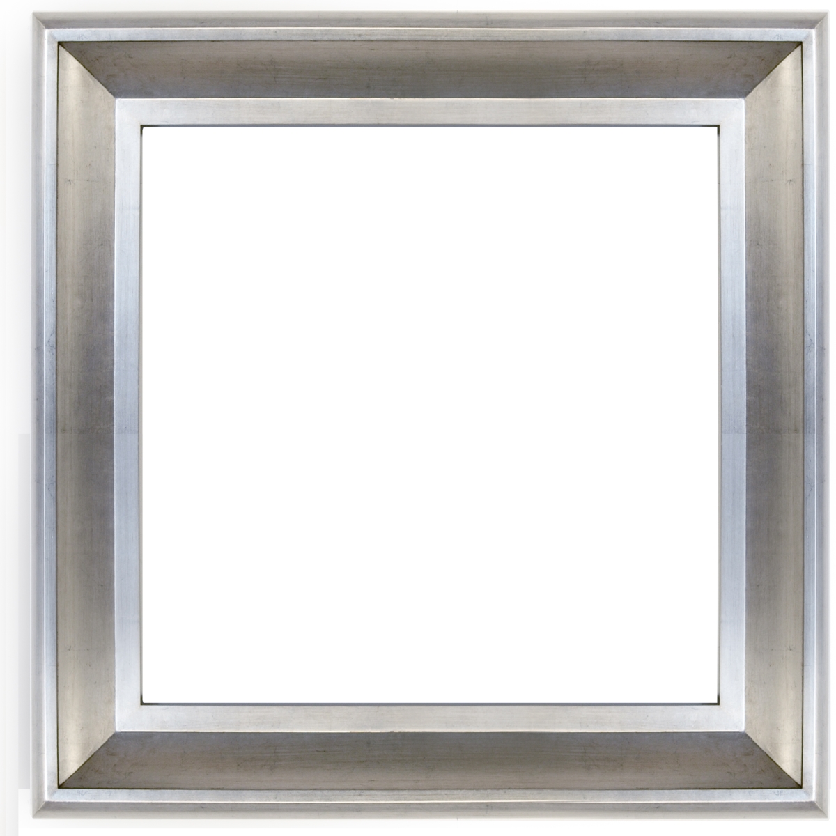 Interior size is 40 x 40 with an overall exterior dimension of 52 x 52 with a profile width of 6 and a profile height of 3 . Our Sterling Frame is a very beautiful and popular larger scale frame. The frame is made in wood with wood liner and features a very clean and modern all over hand finish of silver leafing. The inner scooping contoured profile works perfectly to draw the eye inward to showcase the subject of the frames use and will offer a beautiful and trend capturing and dramatic framing result. A FRAMERS CHOICE SELECTION !!!