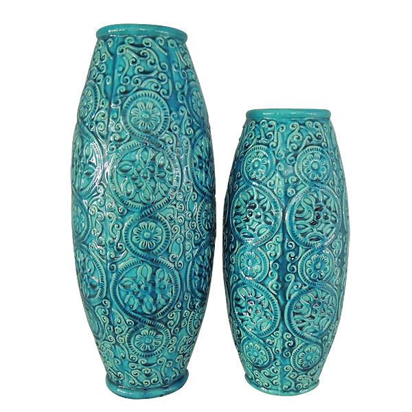 Set of 2 Artist sculpted art vases in a strikingly beautiful Blue porcelain finish graduated in size for a bigger and more interresting display. Hand made in Jingdezhen. Jingdezhen porcelain has been famous not only in China but known internationally for its quality and for the artists who craft there. This is a city were the art of porcelain is recognized and valued by collectors of porcelain throughout the world and leading artist's of the craft come to live and become prixed master artist of the craft inspired by the talent and techniques developed in this area .
