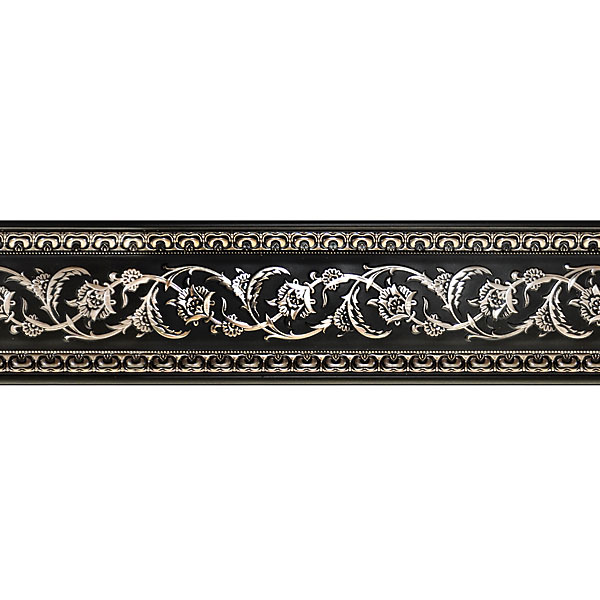 Masterpeice Molding Is A Very Special Innovative Exclusive Product That Enables Home Owners To Apply Beautiful Finished Molding Right Out Of The Box. They Are Sold In Packages Of 6 Peices Of 13' Molding Per Box With Each Box Containing 78 Linear Feet Enough To Do 1 Huge 14 X 22 Foot Room With 6 Foot For Any Waste. This Chair Rail Has A Raised Silver Scroll Floral Patter Over An Elegant Black Base Tone . While Chair Rails Are Conventionally Used To Break Up A Wall As A Border Normally Around Waste High This Chair Rail Can Also Be Combined With The Matching Silver Floral & Black Base Tone Crown Molding To Create A Very Powerful Addition To The Crown For An Even Bigger And More Dramatic Cap To Your Wall. The Fact That It Comes Prefinished Out Of The Box The Home Owner Can Install At Any Time With No Fair Of Mess Or Damage To Any Existing Room Decor. It Can Be Easily Nailed To The Wall With Simple Finishing Nails Which The Nails Can Virtually Be Hidden By Locating The Nails Into The Design Elements Of The Molding And Gently Nailing Or Glued. The Molding Is Made Of Polystyrene And As Such Is Durable Flexable Light Weight And Will Never Shrink Like Conventional Wood Molding . Masterpeice Molding By Afd Is An Innovative Solution That Will Add Value And Beauty To Your Home Or Project And Prior To Its Creation The Idea Of Adding Such Beautifully Finished Molding Would Have Required Many Proffessionals And A Very Expensive And Messy Installation.
