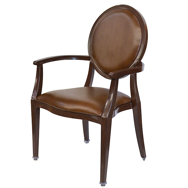 FROM OUR BANQUET CHAIR CUSTOM PROGRAM ! Our Executive Banquet Chair is a very comfortable and substantial looking arm chair that was designed to effeciently stack when not in use. Made in durable full aluminum welded construction this is one of the better long lasting quality chairs offerred for any price with NO ASSEMBLY REQUIRED. Our finish is a hand applied classic wood tone with powder coating for longer lasting durability. Our cushion is fire rated and the matching cover is in commercial quality 100000 double rub tested Polyeurethane. Allow us to quickly quote any of your projects banquet seating or restaurant booth and table needs. We will be a very viable source when your needs call for lasting quality and timely delivery with the very best price. Contact our friendly custom order service representatives where no project is to big and very few our to small.