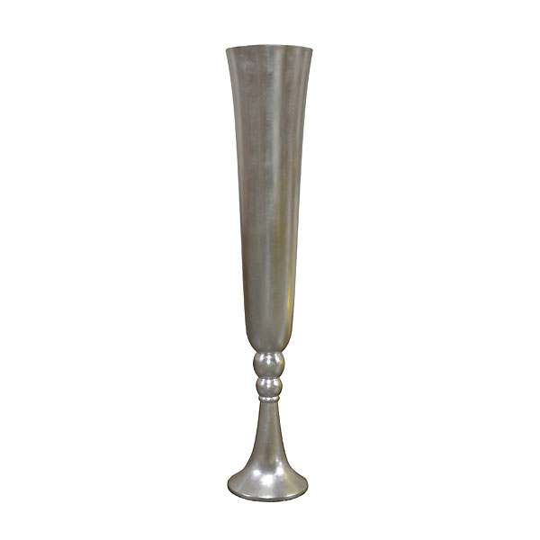 A striking 74 tall fluted vase in a contemporary all silver leaf finish from our Argento finish collection. A large collection featuring many beautiful shaped and functional items all with clean lines but very much a collection with an emphasis on scale and drama. Sold seperatley but often ordered in pairs for balance and symmetry. The vase is hand cast in a fiberglass resin which is durable and can withstand outdoor applications. The hand applied silver leaf finish is further protected with an enriching laquer top coat. The finish however is not recomended for outdoor use unless maintained with protective laquer top coatings. The frequency of which will depend on your specific conditions.