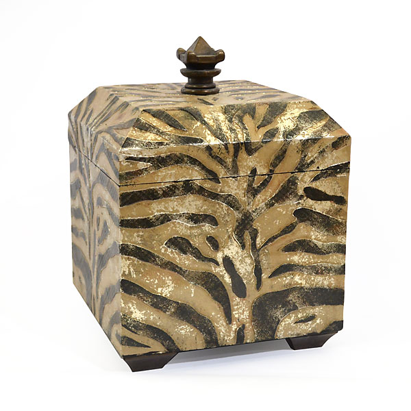 This table top box in a zebra design with shimmering silver & black finsih and removable lid can be used for storage in a multitude of place in the home or simply as a beautiful pieces of decor
