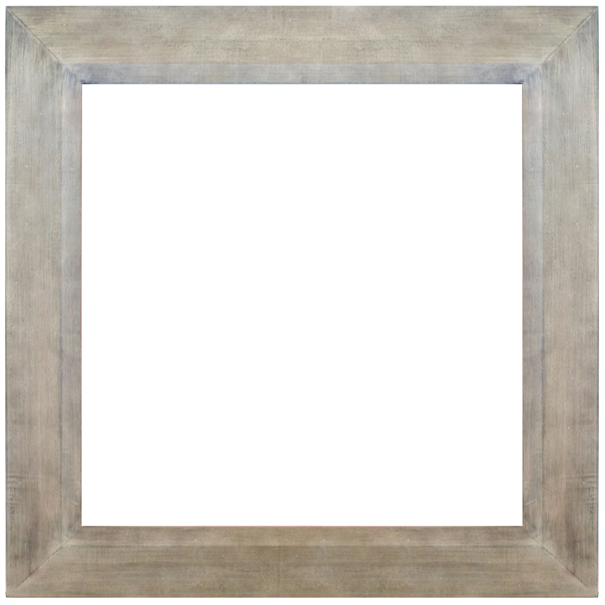 Interior size is 36 x 36 with an overall exterior dimension of 48 x 48 with a profile width of 6 . Our Grand Gallery Mounter Frame is our largest profile of this new fashion frame which embraces a brand new aesthetic for gallery framers and contract projects. The frame was designed as a base for Stretched Art or Gallery Stretched art to sit mounted to its face. This free form modern affect allows the art to be presented against a frame foundation. The frame is made in solid wood and the finish featured is our Seasoned Wood Finish (SWD) with a bleached wood tone with hand applied beige wash with an added textured technique creating a beautiful all over finish. The new designed frame comes in several sizes and 3 popular finishes GOLD ( GD) SILVER (SIL) or SEASONED WOOD (SWD).