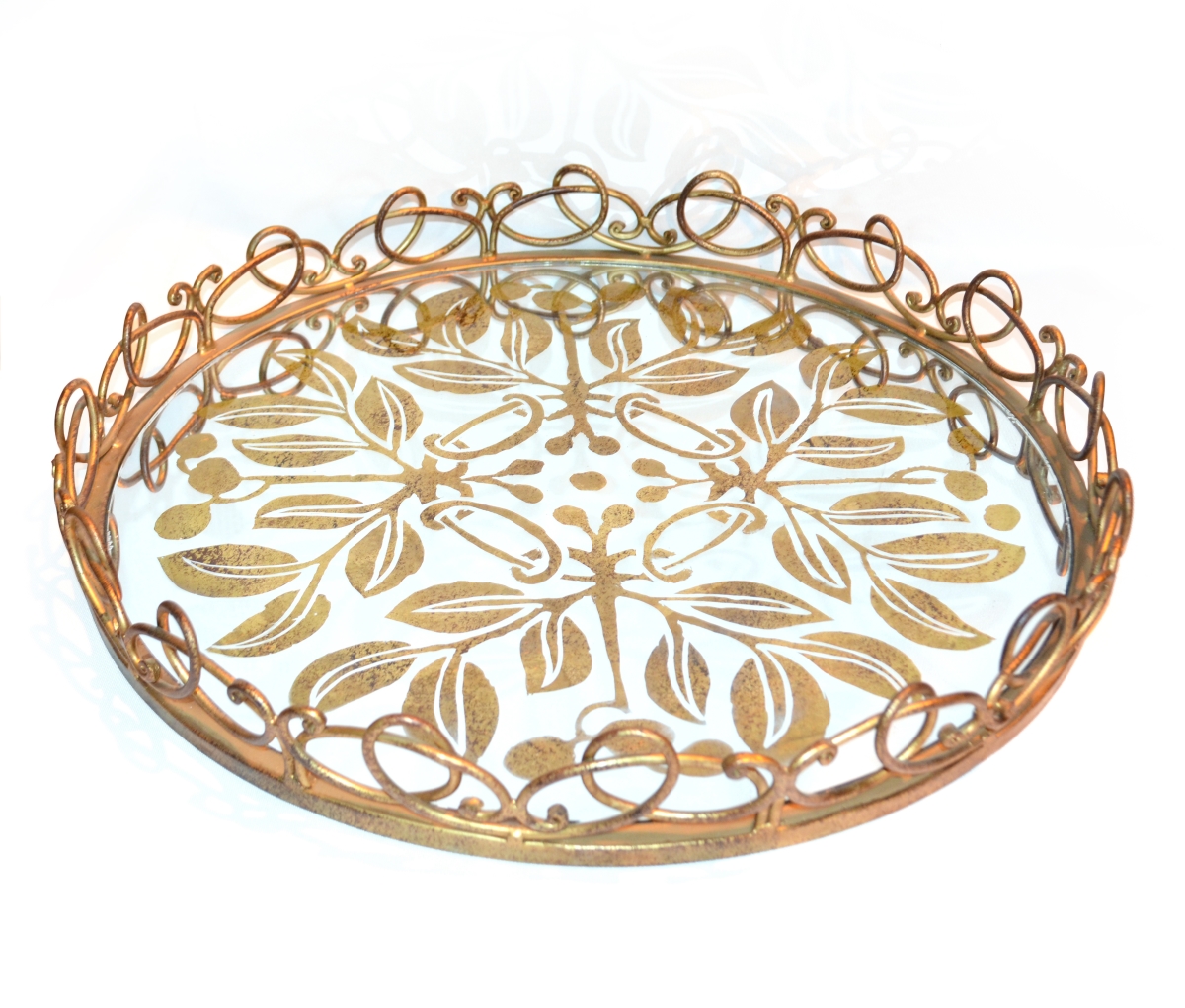 AFD Home 12002105 Golden Leaf Round Tray Multi Color